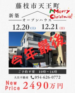メリークリスマス♪ ちょっと 早いのですが、今年最終のオープンハウスとなります。